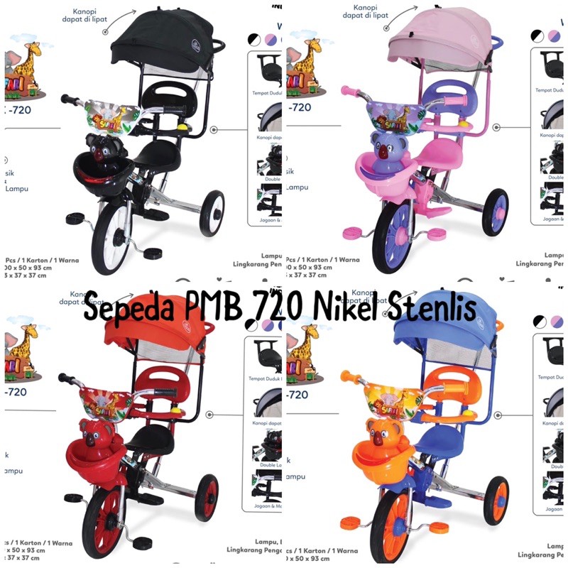 Tokosarana Mahasarana Sukses Sepeda Roda Tiga Anak Pmb Bmx 720 Nikel 1 3 Tahun Roda Karet Ic Music Koala Rotor Safety Bar Kanopi